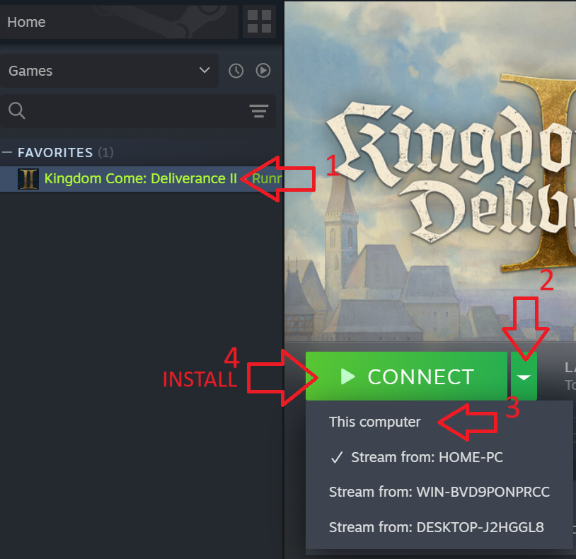 Accedi alla tua libreria di giochi, espandi la barra laterale e seleziona "Questo computer". Quindi scegli "Installa" o "Gioca" per procedere con la configurazione del gioco.
