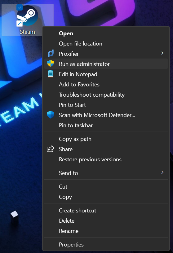 1. Avvia Steam come amministratore, come mostrato sullo schermo.