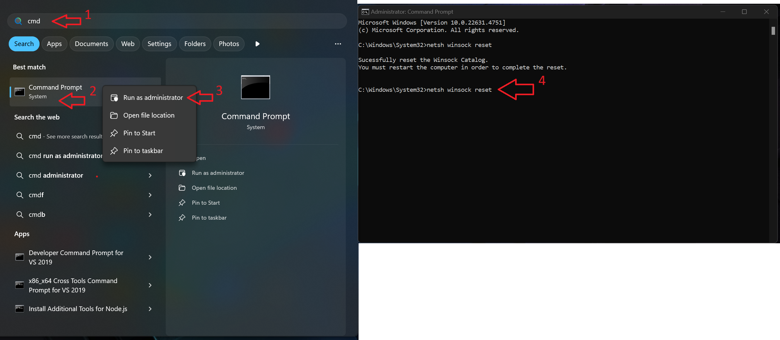 netsh winsock reset